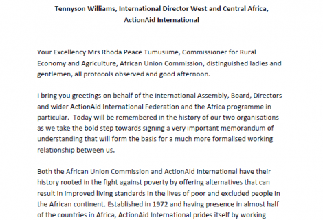 ActionAid Statement at the Signing Ceremony for the MOU with African Union Commission
