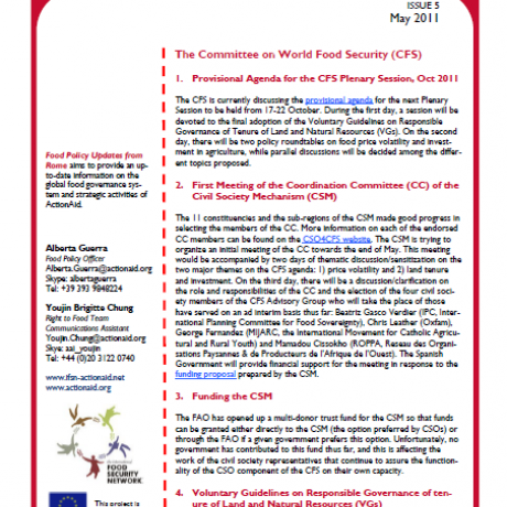 Food Policy Updates from Rome aims to provide an up-to-date information on the global food governance system and strategic activities of ActionAid.