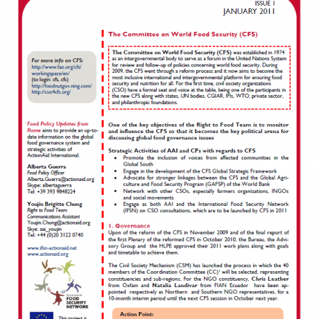 Food Policy Update from Rome - Issue 1, Jan 2011